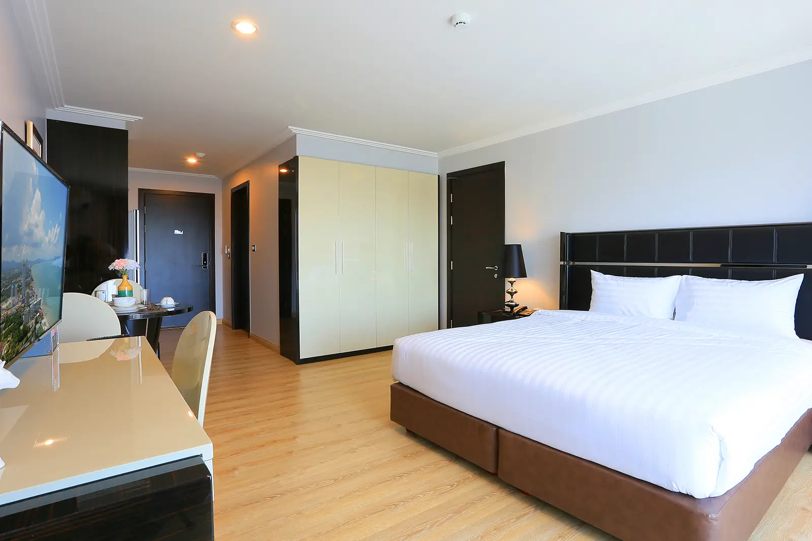 Guests will feel comfortable with over 40 square meters of living space, and privacy is ensured on the King bed size with your partner. The facilities are perfectly arranged. Ideal for relaxing or business meetings. High-speed internet access, large LED TV, and a variety of room amenities.